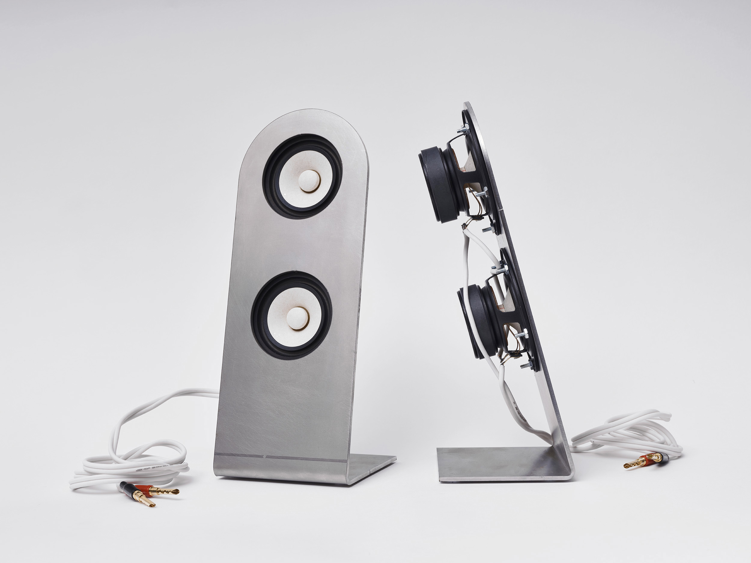 The DS is an avant-garde speaker system crafted from raw, untreated steel with an open enclosure.